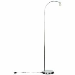 Modern designer style curved stem floor lamp base in a polished chrome metal finish. This contemporary floor lamp base is guaranteed to make a statement in any home. As this is a lamp base only it allows you to pair it with a shade of your choice making it perfectly suited for any decor.