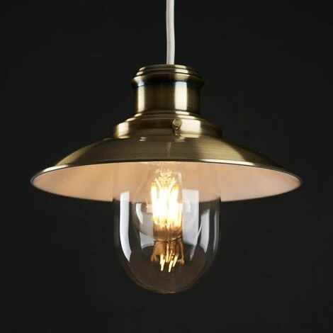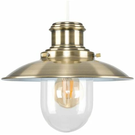 Magnificent fisherman’s lantern lamp ceiling pendant. This modern ceiling lampshade comes in a stunning antiqued brass effect finish giving this classic nautical boat design a contemporary twist. Ideal for bringing New York coffee shop / diner style into the lounge dining area bedrooms hallways and kitchen. Simply fits to an existing ceiling cord so no electrician required! 1 x 40w BC B22 or ES E27 Bulb Required – Includes Reducing Ring. This ceiling lantern would also look stunning with a vintage style squirrel cage steampunk bulb