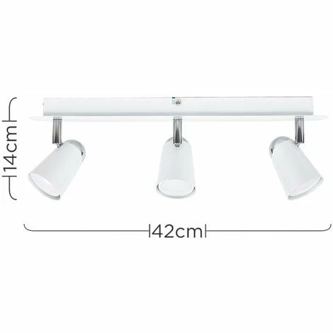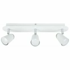 Modern 3 way ceiling spotlight fitting in a gloss white and silver chrome finish. Features fully adjustable spotlight heads allowing you to direct the light where it is required. Ideal for living rooms bedrooms kitchens and other living areas. Spotlights are a great way to bring additional illumination into a room. The adjustable heads enable you to direct the light source to exactly where you want it.