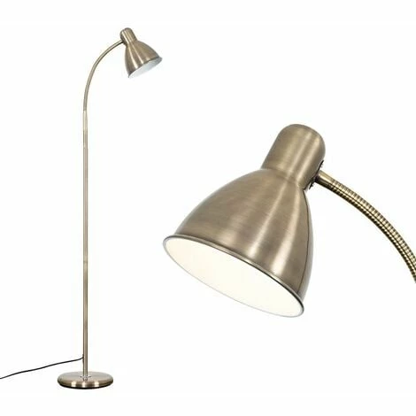 Modern floor standing lamp in an antique brass finish. Features an adjustable flexi neck for perfect positioning. Ideal for reading or craft work as well as for general room lighting. An instant update you can change your room style in seconds.