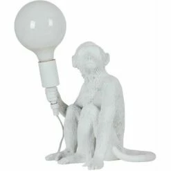 Featuring a Monkey holding a light bulb in a white polyresin finish this unique lamp is perfect for adding a retro style to your home. Complete with an in-line on/off switch for easy use. This lamp can be paired with a bulb of your choice creating a real style statement and complete your living space look.