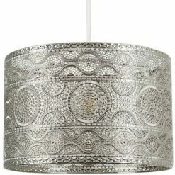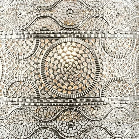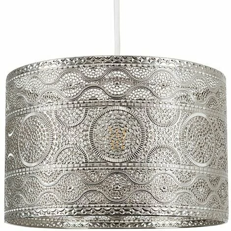 Moroccan style ceiling pendant light shade in a silver chrome metal finish which features intricate patterns and details. Easily fits to your existing lampholder which means that an Electrician is not required.