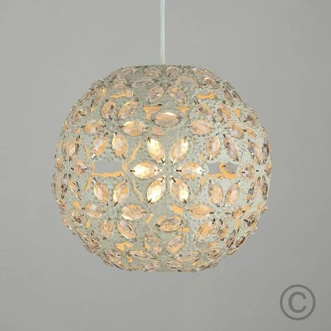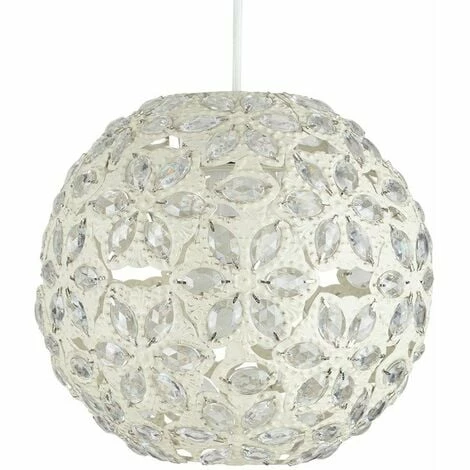 Moroccan style ceiling pendant light shade in vintage effect cream finish. Features an intricate metal ball design with clear light-reflecting jewel beads. Easily fits to your standard ceiling light socket – no electrical installation required. A non electric ceiling pendant shade is a quick and economical way to update your room in seconds! Easy to fit to your existing lamp holder – no electrician required. Suitable for use with a general domestic or energy saving bulb.