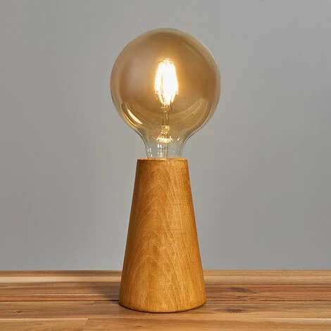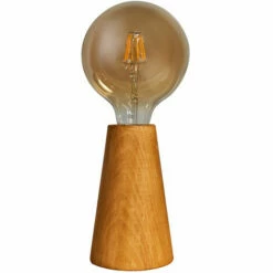 This MiniSun table lamp comes in a natural wooden finish and features a cone shaped base. Perfect for adding a modern style to any room in your home.