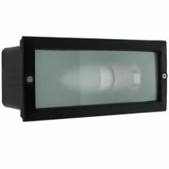 Modern outdoor brick light in a black aluminium finish with a frosted glass casing. An ideal product to help create a warm and inviting glow to your external walls – a great wall to add outdoor decorative lighting.