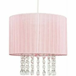 This pink voile wrapped pendant light shade looks fantastic in dining rooms living rooms bedrooms hallways etc. The hanging acrylic droplets cast a subtle light throughout the room once lit. A perfect addition to any room.