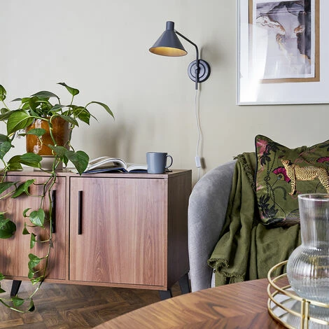 This MiniSun plug in wall light fitting comes in a grey metal finish and features an adjustable swing arm function allowing you to direct the light where required.