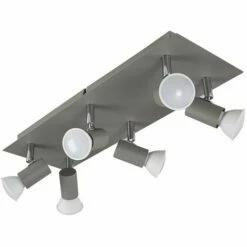 Beautiful 6 way spotlight in a silver polished chrome cement / stone effect finish and a polished chrome ceiling plate – rectangular design. This ceiling spotlight is perfect for kitchens and any other living area within the home. Update your ceiling fittings with this stunning light. Spotlights are adjustable and can be adjusted to how you prefer them – direct the light where it is required. 6 x 50W GU10 halogen bulbs are required – not supplied.