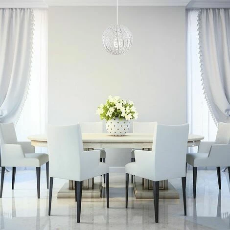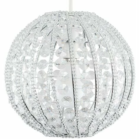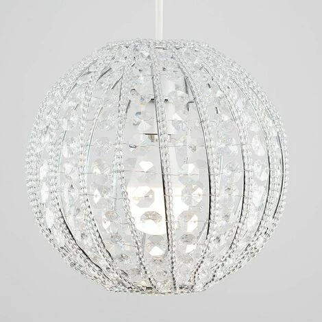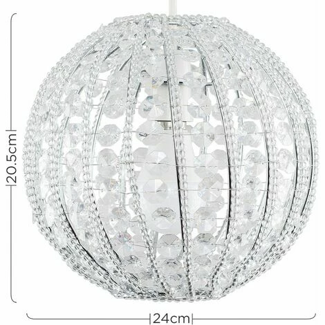 Modern round ceiling pendant light shade with clear light reflecting acrylic jewels and beads. Easily fits to your standard ceiling light socket – no wiring required. A non electric ceiling pendant shade is a quick and economical way to update your room in seconds! Easy to fit to your existing lamp holder – no electrician required. Suitable for use with a general domestic or energy saving bulb.