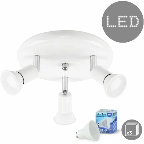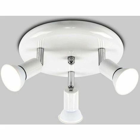 Modern adjustable 3 way spotlight. This spotlight is suitable for ceiling mounting and is ideal for lounges dining rooms kitchens bedrooms and other living areas. Spotlights are a great way to bring additional illumination into a room. The adjustable heads enable you to direct the light source to exactly where you want it. 3 x Super Bright GU10 Energy Saving Warm White LED Bulbs Included