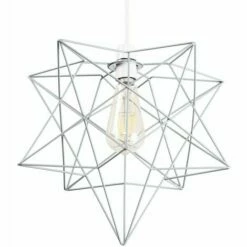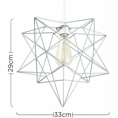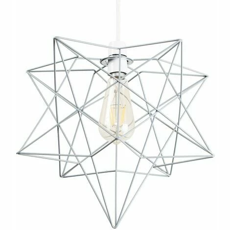 Retro geometric star design ceiling pendant light shade in a matt grey metal finish. Features an open design which shades the bulb whilst allowing light to disperse effectively and evenly throughout the room.