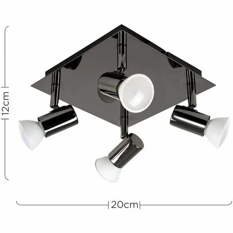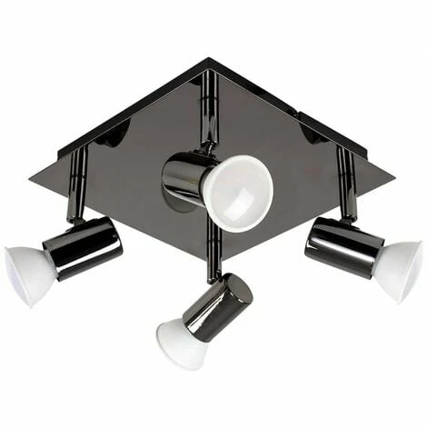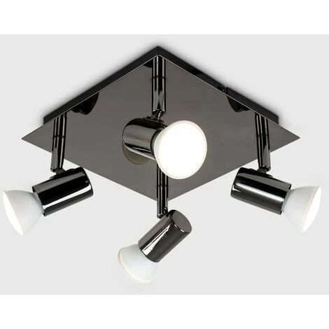 Beautiful 4 way spotlight in a black chrome finish with a black chrome ceiling plate. This ceiling spotlight is perfect for kitchens and any other living area within the home. Update your ceiling fittings with this stunning light. Spotlights are adjustable and can be adjusted to how you prefer them – direct the light where it is required. 4 x 50W GU10 halogen bulbs are required – not supplied.