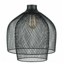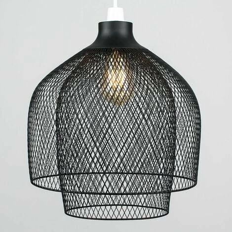Retro style 2 tier ceiling pendant light shade in a matt black mesh design metal finish. Ceiling lights are usually the main source of illuminating a room but with the many styles on offer today also become a main focal point or talking point. This unique light will make a real style statement and complete your living space look. Ideal for dining rooms kitchens and other living areas. Easily fits to your existing light fitting – no electrical installation required.