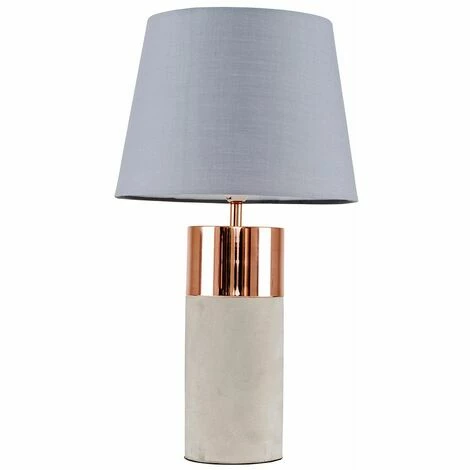 This modern industrial lamp from MiniSun comes in a cement and copper finish combining a matt base with a glossy metal top for the perfect contrast. The cylinder design of the lamp is perfect for adding a modern style to your home. It has been paired with our cotton tapered shades in a range of colour options. Why not add our MiniSun LED bulb to your purchase This energy saving bulb gives equivalent light output to a 40W halogen bulb whilst using a fraction of the energy.