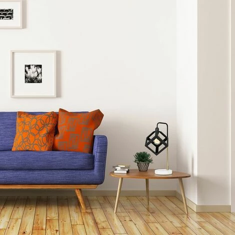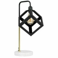 Retro style metal rod frame table lamp in a matt black and gold effect finish with a white solid marble base. This lamp is constructed from high quality materials and the marble base makes this lamp extremely sturdy. This contemporary table lamp is guaranteed to make a statement in any home. Complete with a black metal puzzle cube design shade which features an open design which allows the light to disperse effectively and evenly throughout the room. Table lamps are a great way to bring additional lighting to a room – perfect for hallways bedrooms lounges living rooms and offices.