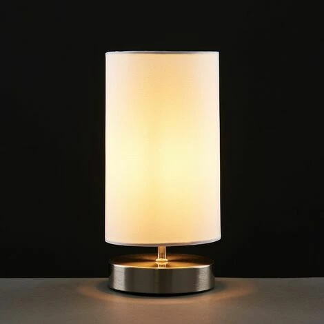 This fantastic modern touch table lamp with a stunning brushed chrome sturdy base is a wonderful addition to any contemporary home and any bedroom lounge hallway living room or office. The white polycotton shade allows the light to be dispersed evenly throughout the room. Simply touch the metal base to turn it on. The light can be set to 4 stages off a low level light for mood lighting a medium level light for general lighting and a high level light which is the brightest setting to create an intense pool of light. Practical and perfect for homework writing bedside reading desk studying hobbies crafts or simply illuminating a corner.