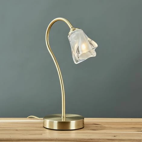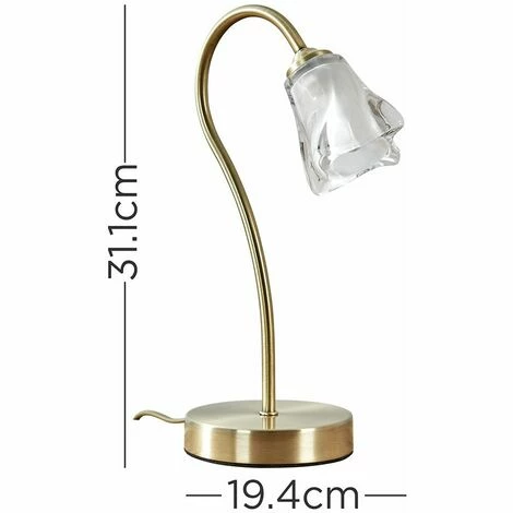 Fantastic modern touch activated swan neck table lamp in antique brass finish. Sculptured glass shade with frosted inner surface. Simply touch the metal base to turn the lamp on – no more trying to find the switch at night. The light can be set to 4 stages off a low level light for mood lighting a medium level light for general lighting and a high level light which is the brightest setting to create an intense pool of light. Please Note This lamp requires dimmable bulbs. Not suitable for standard LED or energy saving bulbs.