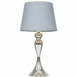 This beautifully made table lamp comes in a polished chrome finish and features a modern curved spindle design.