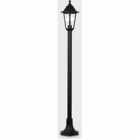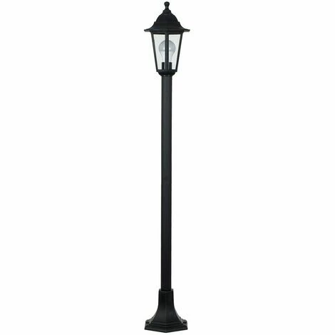 Vintage style single outdoor lamp post makes a statement in any garden. Black Plastic. 1.2 meters tall. IP44 Rated. Tall and made from durable weather resistant plastic this post is perfect for lighting up any garden courtyard or driveway. Complete With 6w LED ES E27 Warm White Bulb