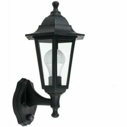 This beautiful traditional style outdoor wall light would make a statement on any external wall. Constructed from durable black resin and fitted with an unobtrusive state-of-the-art PIR motion sensor which triggers the light when movement is detected it also offers an IP44 rating meaning it is fully certified for outdoor installation. The stylish Victorian-looking lamp will complement any garden or patio perfectly and will give any setting in which it’s placed a much more traditional feel. It is an ideal product to help create a warm and inviting glow to doorways porches and external walls and an elegant way to add security to your home as well as outdoor decorative lighting. Requires 1 x ES E27 (Edison screw) bulbs – not supplied.