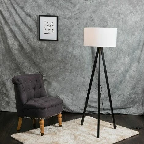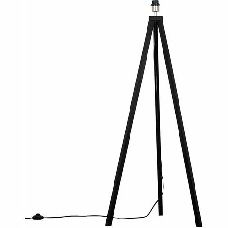 Modern tripod style floor lamp base in a black wood finish which features an in-line on/off switch for easy use. Floor lamps are a great way to bring additional lighting to a room or you can use them reduce your main light output and create a more relaxing mood/atmosphere. An instant update you can change your room style in seconds. Lamp base only – pair with a shade of your choice.