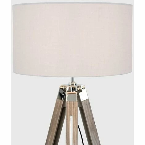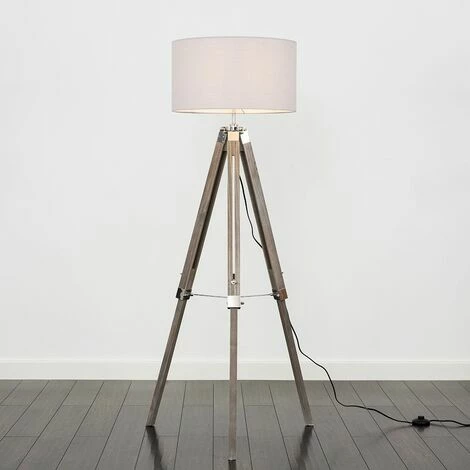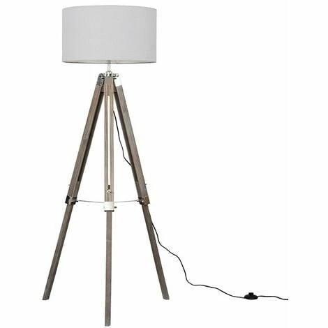 Modern designer floor lamp in a light wood and chrome metal finish. Comes complete with a cool grey fabric drum lamp shade and features an in-line on/off foot switch for easy use. Floor lamps are a great way to bring additional lighting to a room or you can use them reduce your main light output and create a more relaxing mood/atmosphere. An instant update you can change your room style in seconds.