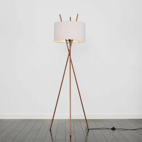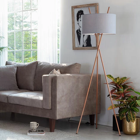 This cross over design metal floor lamp base comes in a copper finish. It comes complete with one of our fabric lampshades in a range of colour options.