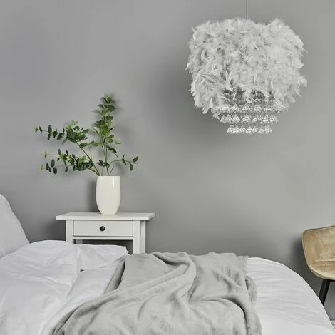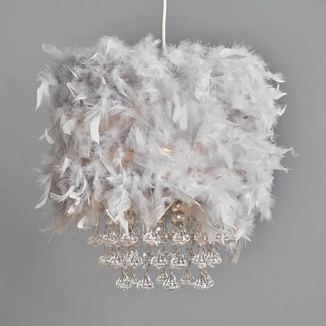 This MiniSun ceiling light shade is covered in real feathers with clear acrylic jewel droplets. It simply fits to your existing ceiling light socket – No wiring required. Perfect for adding a stylish touch to any room in your home.