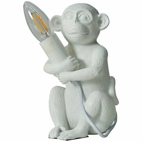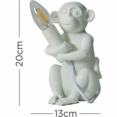 This MiniSun table lamp comes in a white finish and features a detailed baby monkey holding an LED filament bulb(Not Supplied – Please add above). Complete with an in-line on/off switch for easy use. This statement lamp is perfect for adding a retro style to any room in your home.