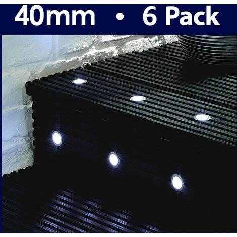 Complete Stainless Steel Decking / Plinth Lights Kit. Includes all bulbs cables and connections. Update your garden with these fantastic lights. These white LED’s light up your decking beautifully. IP67 outdoor rating. This kit contains 6 x 40mm LED decking lights (1.5m of cable between each light). 1 x 12V IP44 transformer with 3 pin plug for indoor connection to mains power. 5m cable from transformer to first light.