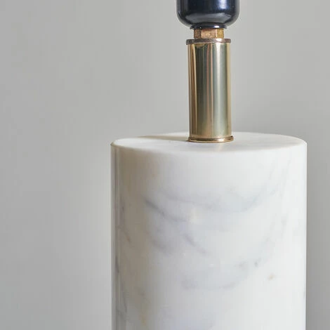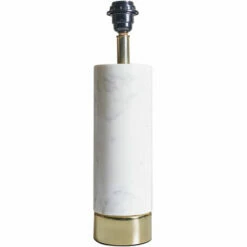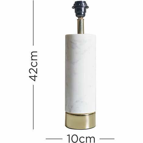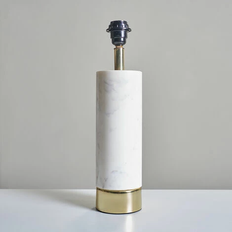 This MiniSun cylinder table lamp comes in a white marble finish with a brass base. Simply pair with a shade of your choice to complete the look. Ideal for living rooms dining rooms bedrooms and other living areas.