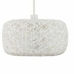 Modern ceiling pendant lampshade in a white wicker / lattice / rattan finish. Features a round design that allows the light to filter through beautifully creating an ambient glow. Perfect for living rooms bedrooms hallways and dining areas. Easily fits to your existing lampholder so an Election is not required.