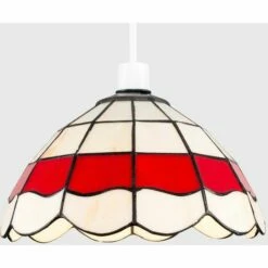 MINISUN Vintage Pendant Light Shade Cream Red Stained Glass Ceiling Lampshade