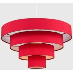 MINISUN Round 3 Tier Fabric Ceiling Pendant Lamp Light Shade – Red – No Bulb