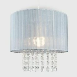 MINISUN Grey Voile Ribbon Wrapped Pendant Shade + Acrylic Droplets – 10W LED GLS Bulb Warm White