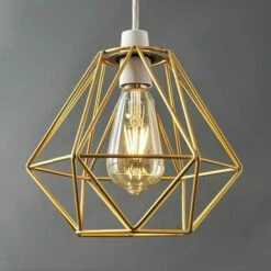 MINISUN 2 X Gold Ceiling Pendant Light Shades + 4W LED Filament Bulbs Warm White