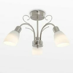 MINISUN 3 Way Brushed Chrome Ceiling Light Frosted Glass Shades – No Bulbs