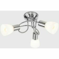 MINISUN 3 Way Brushed Chrome Flush Swirl Arm Ceiling Light + Frosted Glass Shades – No Bulbs
