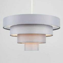 MINISUN 4 Tier Grey Fabric Ceiling Pendant Light Shade – 10W LED GLS Bulb Warm White