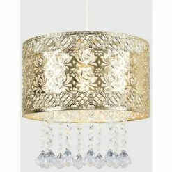 MINISUN Intricate Pattern Gold Ceiling Pendant Light Shade With Jewel Droplets – No Bulb