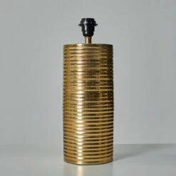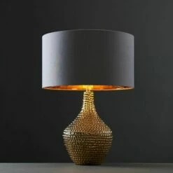 MINISUN Metallic Gold Indent Textured Ceramic Table Lamp Grey/Gold Drum Shade – No Bulb