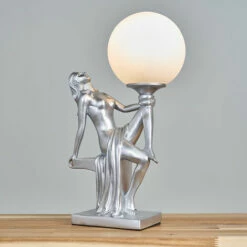 MINISUN Vintage Table Lamp Woman Art Deco With Glass Shade – Silver – Including LED Bulb